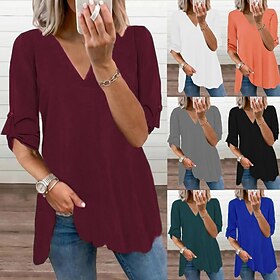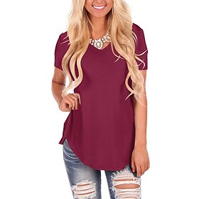 Women's Blouse T shirt Basic V Neck Modern Plain T-shirt Sleeve V Neck Summer Regular Green Blue White Black Red