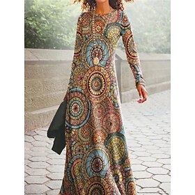Season:Fall,Spring,Winter; Fabric:Cotton; Sleeve Length:Long Sleeve; Look After Me:Machine wash; Gender:Women's; Style:Casual; Elasticity:Micro-elastic; Occasion:Going out,Daily,Date; Fit Type:Regular Fit; Dresses Type:Casual Dress,Swing Dress; Pattern:Tribal,Flower; Design:Print; Neckline:Crew Neck; Front page:FF; Listing Date:12/29/2022; Production mode:External procurement; Bust:; Length:; Shoulder Width:; Sleeve:; Waist:; Special selected products:Season; Fit US Size:; Fit UK Size:; Fit EU Size:; Dress Length Type:Long Dress Maxi Dress