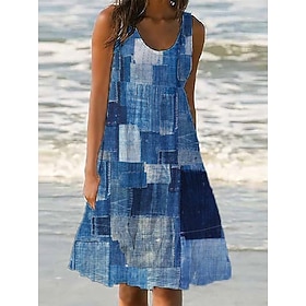 Women's Casual Dress Geometric Color Block Sundress Tank Dress Crew Neck Print Mini Dress Outdoor Vacation Active Fashion Regular Fit Sleeveless Blue Light Blu