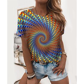 Women's T shirt Tee Rainbow Print Graphic Optical Illusion Daily Weekend Short Sleeve Round Neck Basic Regular 3D Printed Geometric Painting S