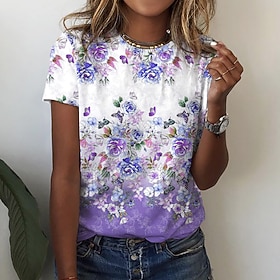 Fabric:Polyester; Sleeve Length:Short Sleeve; Look After Me:Wet and Dry Cleaning,Washable,Machine wash; Gender:Women's; Theme:Painting,Floral; Style:Basic; Elasticity:Micro-elastic; Tops Type:T shirt Tee; Occasion:Casual,Holiday,Weekend; Details:Without Lining; Top Length:Regular; Fit Type:Regular Fit; Pattern:Floral; Design:Print; Neckline:Round Neck; Listing Date:04/18/2022; Clothing Length:; Bust:; Sleeve:; Fit US Size:null; Fit UK Size:null; Fit EU Size:null; Print Type:3D Print