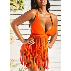 Season:Summer,Spring,Fall; Fabric:Nylon; Sleeve Length:Sleeveless; Gender:Women's; Swimwear Category:2 Piece,Swim Dress; Bra Style:Padded Bras; Style:Modern,Fashion,Holiday,Vacation; Elasticity:Stretchy; Tops Type:Tunic Shirts; Occasion:Pool,Swimming,Beach,Holiday,Vacation; Fit Type:Regular Fit; Function:Outdoor,Sports,Comfy,Swimming,Stretchy; Pattern:Pure Color; Design:Tassel,Open Back; Neckline:V Wire; Trends:New; Special Size:Normal; Bottom Type:Briefs; Front page:FF; Listing Date:04/06/2022; Hips:; Waist:; Size chart date source:Provided by Supplier.; Fit US Size:null; Fit UK Size:null; Fit EU Size:null; Bust: