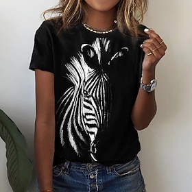 Fabric:Polyester; Sleeve Length:Short Sleeve; Look After Me:Wet and Dry Cleaning,Washable,Machine wash; Gender:Women's; Theme:Painting; Style:Basic; Elasticity:Micro-elastic; Tops Type:T shirt Tee; Occasion:Weekend,Casual; Details:Without Lining; Top Length:Regular; Fit Type:Regular Fit; Pattern:Zebra; Design:Print; Neckline:Round Neck; Listing Date:05/02/2022; Clothing Length:; Bust:; Sleeve:; Fit US Size:null; Fit UK Size:null; Fit EU Size:null; Print Type:3D Print