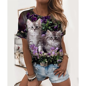 Fabric:Polyester; Sleeve Length:Short Sleeve; Look After Me:Wet and Dry Cleaning,Washable,Machine wash; Gender:Women's; Theme:Painting,3D Cat,Floral; Style:Basic; Elasticity:Micro-elastic; Tops Type:T shirt Tee; Occasion:Casual,Weekend; Details:Without Lining; Top Length:Regular; Fit Type:Regular Fit; Pattern:Cat,3D,Floral; Design:Print; Neckline:Round Neck; Listing Date:05/02/2022; Clothing Shoulder Width:; Clothing Length:; Bust:; Sleeve:; Print Type:3D Print