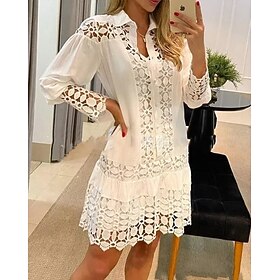 Season:Summer,Spring; Fabric:Cotton,Lace; Sleeve Length:Long Sleeve; Look After Me:Machine wash; Gender:Women's; Style:Fashion,Romantic,Basic; Elasticity:Micro-elastic; Occasion:Vacation,Date,Spring Dress,Summer Dress,Going out,Daily; Fit Type:Loose Fit; Dresses Type:Casual Dress,Shirt Dress; Pattern:Pure Color; Design:Hollow Out,Ruched; Neckline:Shirt Collar; Front page:FF; Production mode:External procurement; 2023 Trends:2023; Bust:; Length:; Shoulder Width:; Sleeve:; Fit US Size:null; Fit UK Size:null; Fit EU Size:null; Dress Length Type:Midi Dress