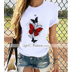 Women's T shirt Tee White Butterfly Graphic Prints Daily Short Sleeve Round Neck 100% Cotton Slim S