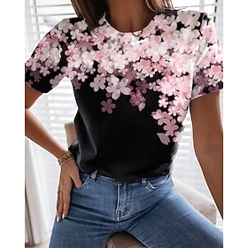Fabric:Polyester; Sleeve Length:Short Sleeve; Look After Me:Wet and Dry Cleaning,Washable,Machine wash; Gender:Women's; Theme:Painting,Floral; Style:Basic; Elasticity:Micro-elastic; Tops Type:T shirt Tee; Occasion:Casual,Holiday,Weekend; Details:Without Lining; Top Length:Regular; Fit Type:Regular Fit; Pattern:Floral; Design:Print; Neckline:Round Neck; Listing Date:03/22/2022; Clothing Length:; Bust:; Sleeve:; Fit US Size:null; Fit UK Size:null; Fit EU Size:null; Print Type:3D Print
