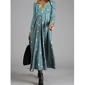 Women's Shift Dress Midi Dress Blue Polka Dot Long Sleeve Winter Fall Autumn Ruched Stylish V Neck Winter Dress Weekend Fall Dress 2023 S M L XL 2XL 3XL