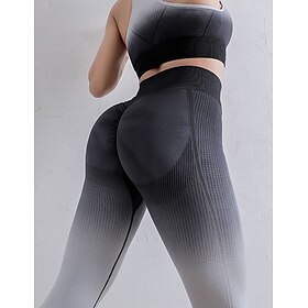 Women's Yoga Leggings Tummy Control Butt Lift Scrunch Butt Ruched Butt Lifting Yoga Fitness Gym Workout High Waist Color Gradient Cropped Leggings Bottoms Blac