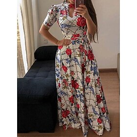 Women's Casual Dress A Line Dress Summer Dress Long Dress Maxi Dress Basic Fashion Leopard Floral Polka Dot Print Outdoor Daily Vacation Stand Collar Short Sle
