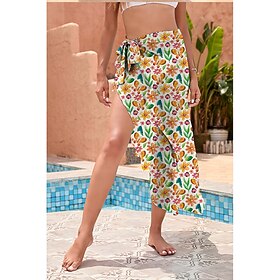 Women's Swimwear Beach Bottom Normal Swimsuit Floral Printing Printing Yellow Dark Green Purple Orange Green Bathing Suits Summer Sports