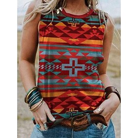 Women's Tank Top Black Red Blue Print Geometric Daily Weekend Sleeveless Round Neck Ethnic Regular Geometric Painting S