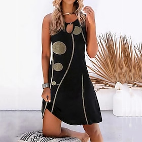 Season:Summer,Spring; Fabric:Polyester; Sleeve Length:Sleeveless; Look After Me:Hand wash,Machine wash; Gender:Women's; Style:Modern,Casual,Basic; Elasticity:Micro-elastic; Occasion:Daily,Holiday,Spring Dress,Summer Dress,Weekend; Fit Type:Regular Fit; Dresses Type:Casual Dress; Pattern:Geometric; Design:Print; Neckline:Crew Neck; Front page:FF; Production mode:External procurement; 2023 Trends:Boom Sale Dress,Under 10,2023; Bust:; Length:; Fit US Size:null; Fit UK Size:null; Fit EU Size:null; Dress Length Type:Mini Dress