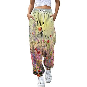 Women's Fashion Athleisure Elastic Drawstring Design Print Pants Sweatpants Full Length Pants Micro-elastic Casual Daily Leaf Flower / Floral Mid Waist Breatha