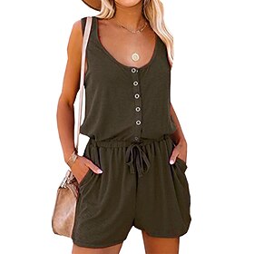 Season:Spring; Fabric:Polyester; Look After Me:Wet and Dry,Machine wash; Gender:Women's; Thickness:Regular; Style:Daily; Elasticity:Micro-elastic; Tops Type:Jumpsuit; Occasion:Home,Daily; Fit Type:Loose Fit; Pattern:Plain; Design:Pocket,Button; Neckline:Scoop Neck; Sleeve Type:Sleeveless; Pants Type:Jumpsuit; Listing Date:03/15/2022; Production mode:External procurement; Hips:; Bust:; Length:; Waist:; Print Type:non-printing