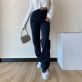 Season:Spring, Fall, Winter, Summer; Fabric:Denim; Gender:Women's; Size Suggestion:standard size, select your usual size; Style:Trousers,Basic; Elasticity:Inelastic; Occasion:Work,Daily; Details:Only pants; Fit Type:Regular Fit; Function:Outdoor,Sports; Waistline:Mid Waist; Pattern:Solid Color; Design:Bootcut,Patchwork; Special Size:Normal; Pants Type:Jeans,Pants Trousers; Fly Type:Zipper,Single Breasted; Front page:FF; Listing Date:06/28/2022; Production mode:Self-produce; Hips:; Length:; Waist:; Pants Length:Full Length