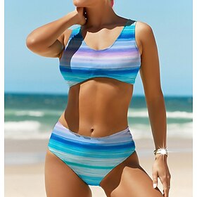 Women's Swimwear Bikini Normal Swimsuit Striped 2 Piece Printing Blue Purple Orange Green Bathing Suits Summer Sports