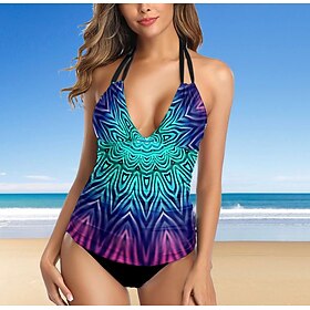 Women's Swimwear Tankini 2 Piece Normal Swimsuit Graphic 2 Piece Printing Blue Bathing Suits Summer Sports