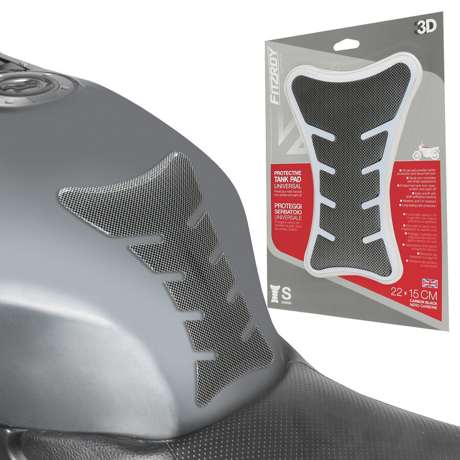 Proteggi serbatoio universale. Protegge la vernice del serbatoio da graffi, strisci da cerniere e bottoni. Il cuscinetto adesivo 3D in gel offre una migliore protezione al serbatoio. Decorate la tua moto regalandole un aspetto cool. Protegge il serbatoio del carburante da macchie, graffi e vernice che salta. Applicazione facile grazie al supporto adesivo. Resistente alle intemperie e ai raggi UV. Protezione del serbatoio a lunga durata