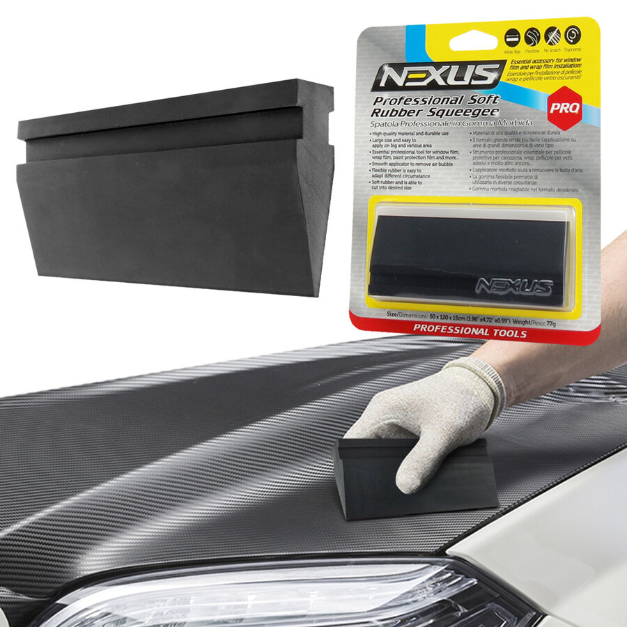 Spatola professionale in gomma morbida. Materiali di alta qualità e di notevole durata. Il formato grande rende più facile l'applicazione su aree di grandi dimensioni e di vario tipo. Strumento professionale essenziale per pellicole protettive per carozzeria, wrap, pellicole per vetri, adesivi e molto altro ancora. L'applicatore morbido aiuta a rimuovere le bolle d'aria. La gomma flessibile permette di utilizzarlo in diverse circostanze. Gomma morbida ritagliabile nel formato desiderato