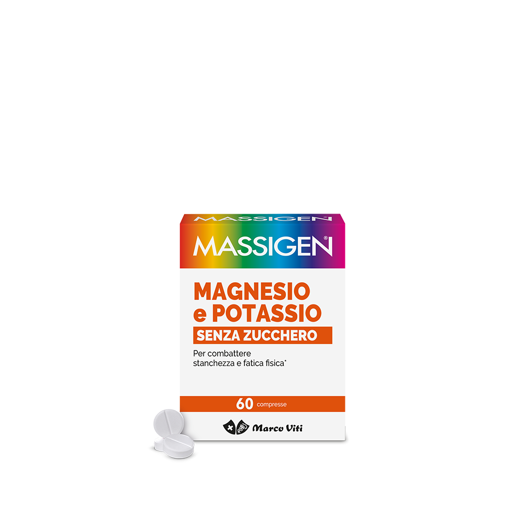 Massigen Magnesio e Potassio Senza Zuccheri - Integratore alimentare di vitamine e sali minerali - 60 compresse