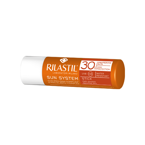 981042866 - Rilastil Sun System Stick Labbra Trasparente SPF30 Resistente all'acqua Rilastil Sun System Stick Labbra Trasparente SPF30 è adatto per proteggere le labbra dai danni causati dai raggi UVA-UVB che causano fotoinvecchiamento. Infatti, grazie al filtro di protezione SPF30 risulta adatto per re