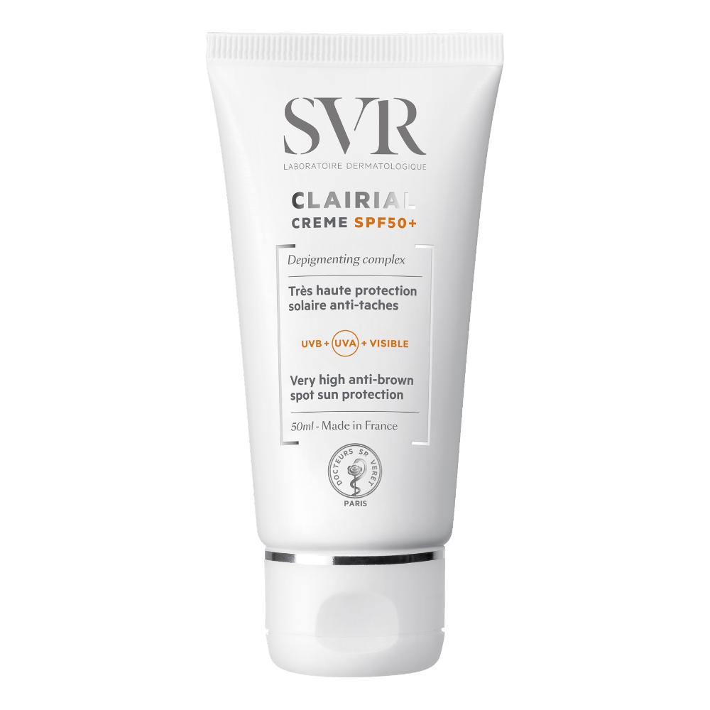 SVR - CLAIRIAL - CREME SPF50+ - Descrizione Protezione solare molto alta, anti - macchie cutanee. Per tutti i tipi di pelle sensibile e per tutti i tipi di macchie scure causate da esposizione al sole, invecchiamento cutaneo, gravidanza, inestetismi. Viso, décolleté, mani. Clairial SPF50+ associa u…