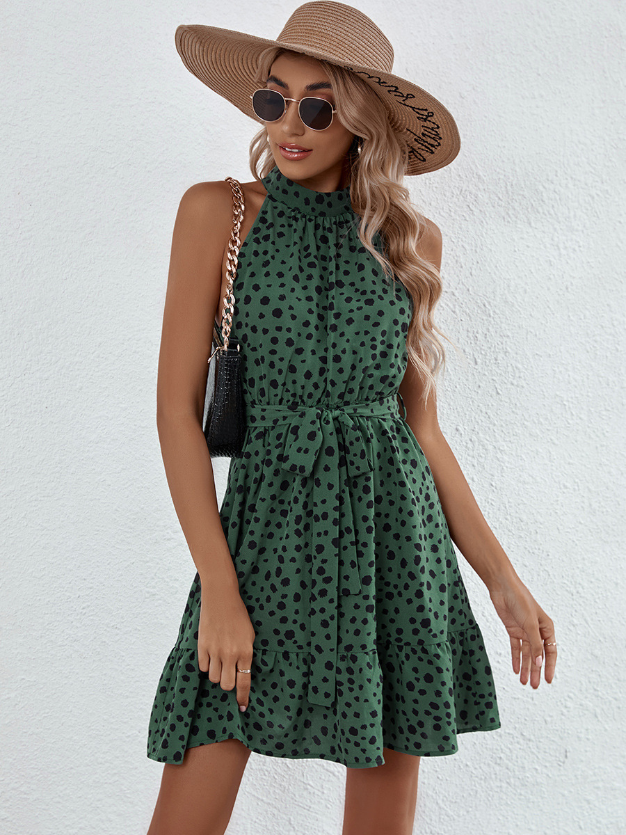 European and American style Womens dress 2022 New spring summer fashion slim side hollow neck halter dress 黑色 M