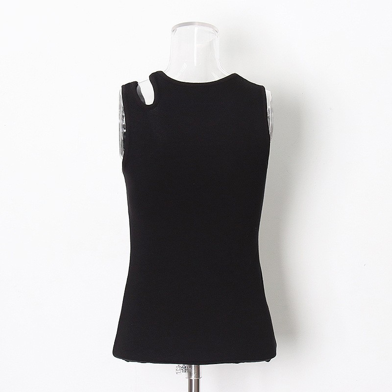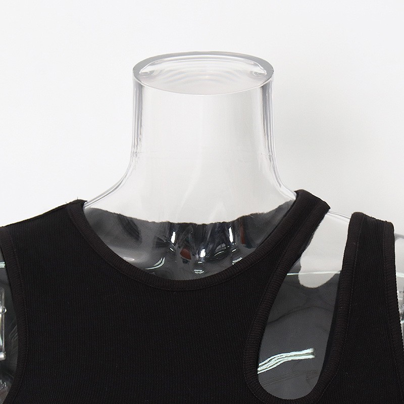 Sexy 2022 Spring/Summer Round Neck Irregular Solid Color Lining Tank Top Length Womens Slim Top Women White L