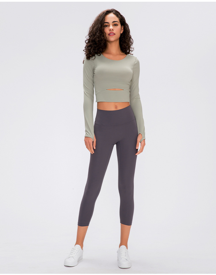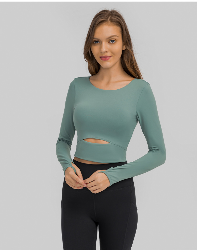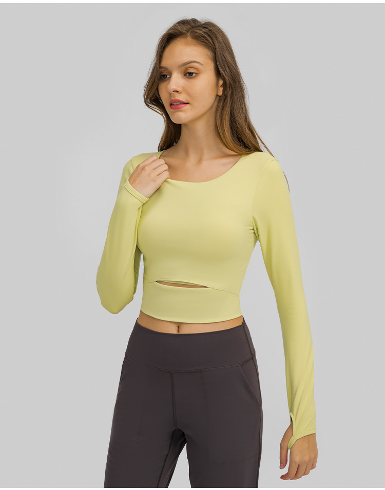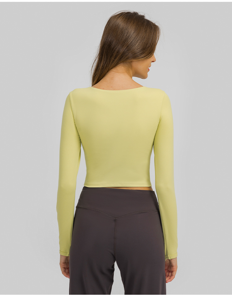Womens Long Sleeve Gym Wear With Chest Pad Algal yellow 8