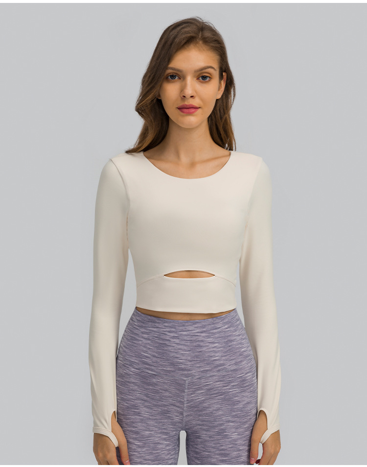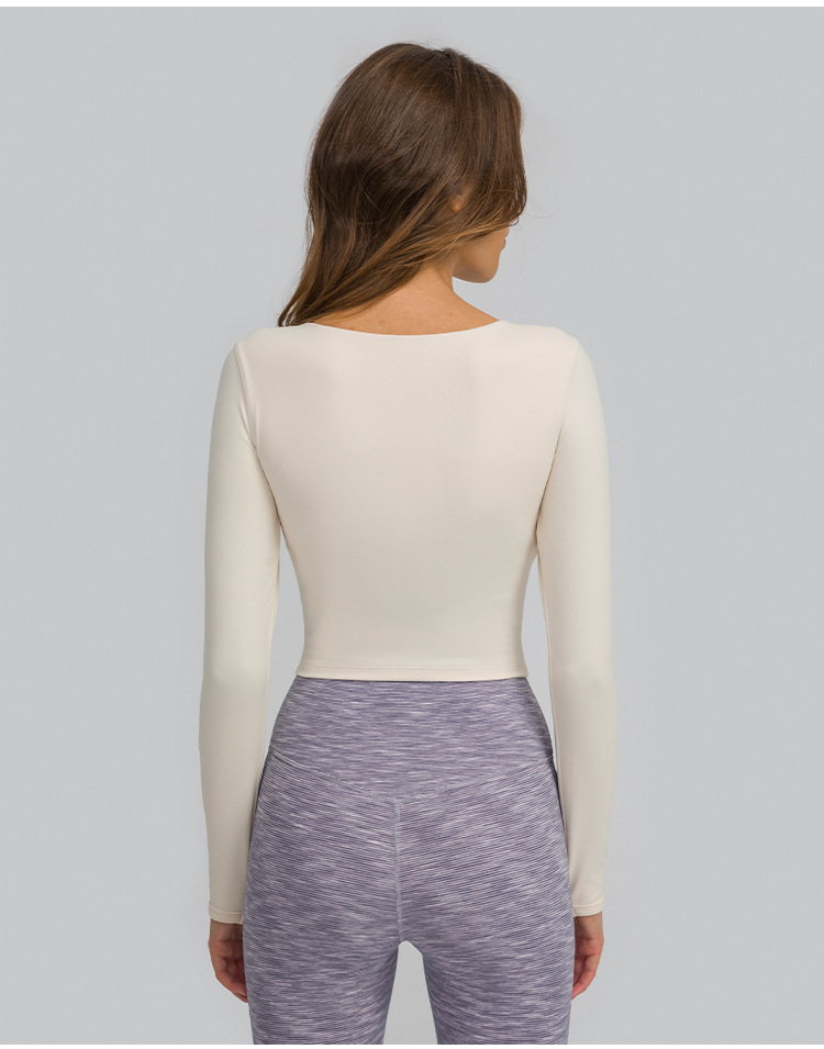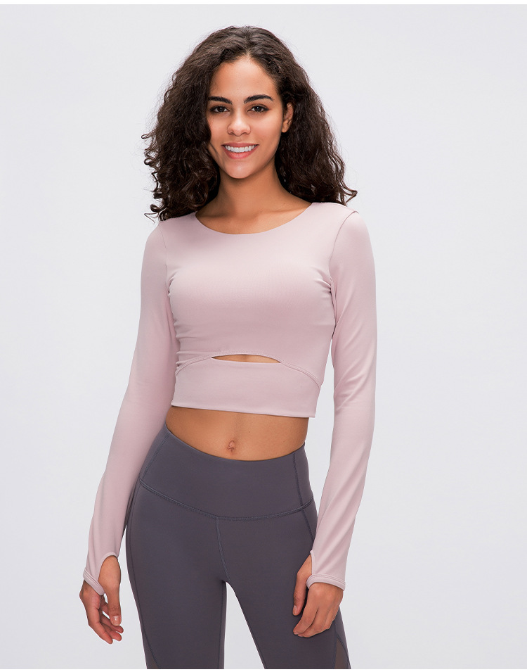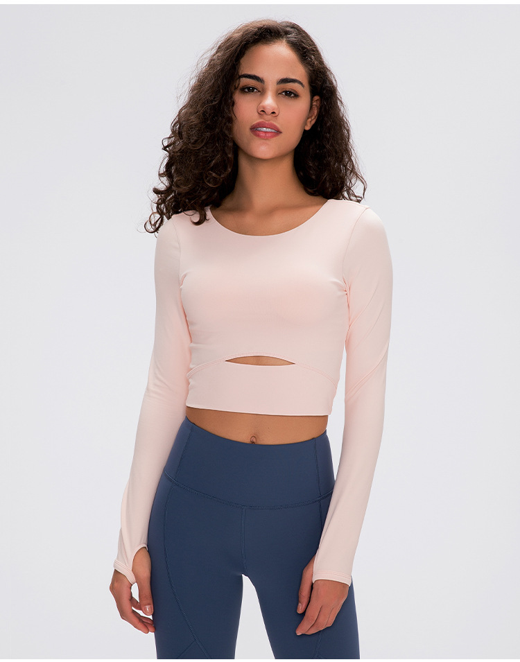 Womens Long Sleeve Gym Wear With Chest Pad light peach 6