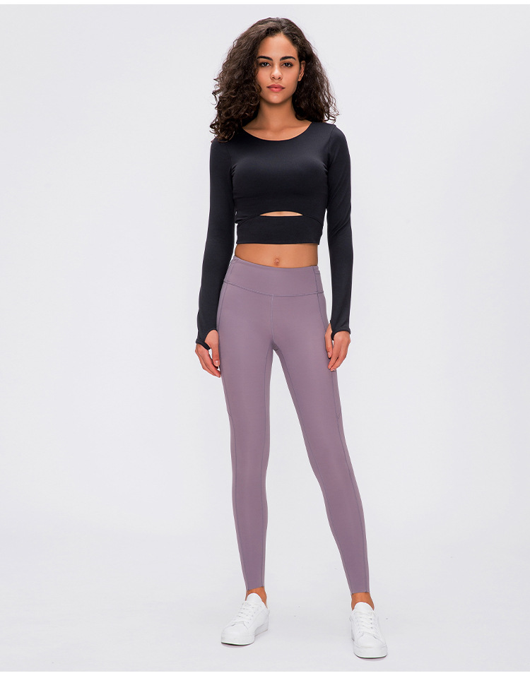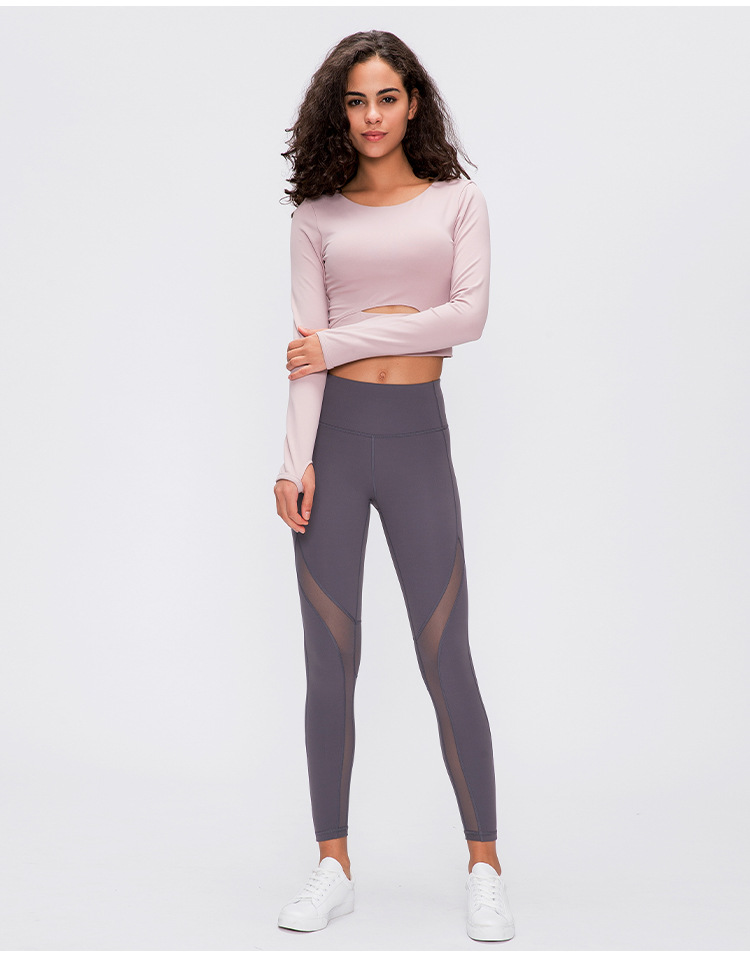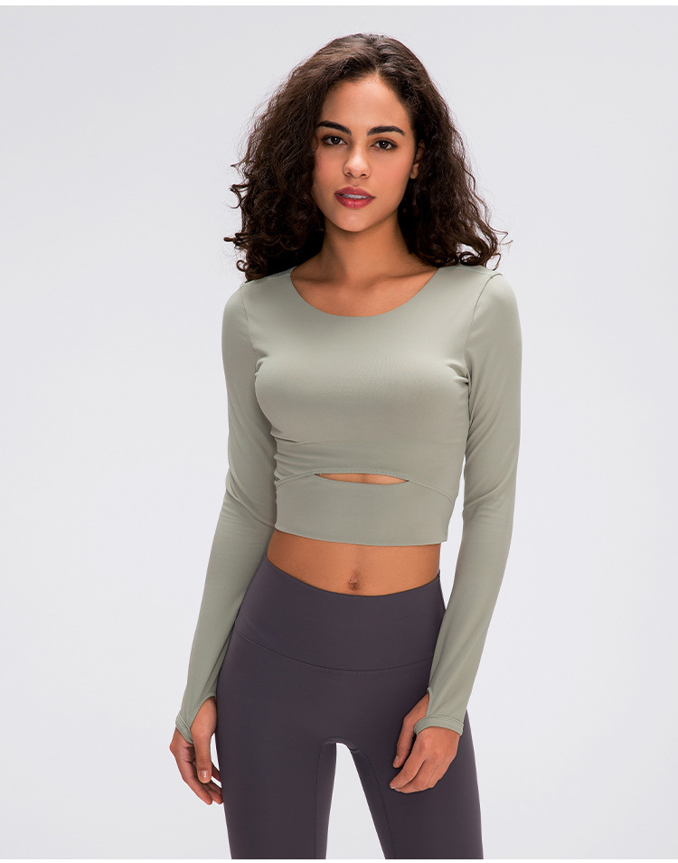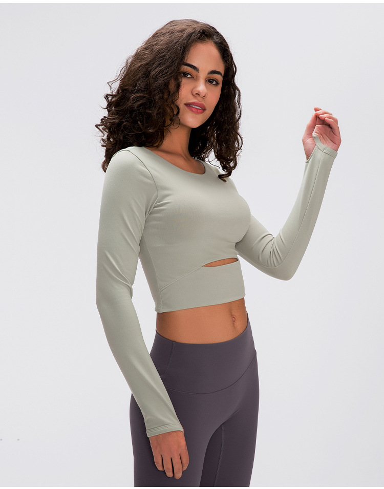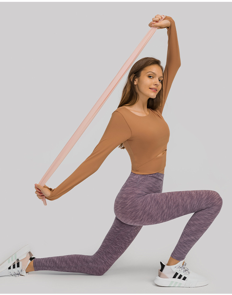 Womens Long Sleeve Gym Wear With Chest Pad light peach 6
