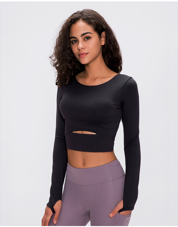 Womens Long Sleeve Gym Wear With Chest Pad black 10