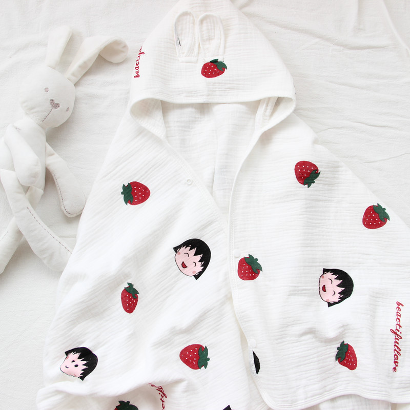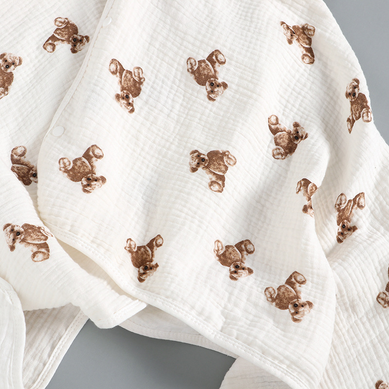 Cotton Candy Cape Bath Towel Four Seasons Cartoon Print Children Hooded Bathrobe brown bear 70*140CM