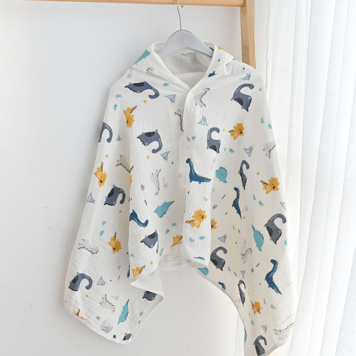 Cotton Candy Cape Bath Towel Four Seasons Cartoon Print Children Hooded Bathrobe blue elephant 70*140CM