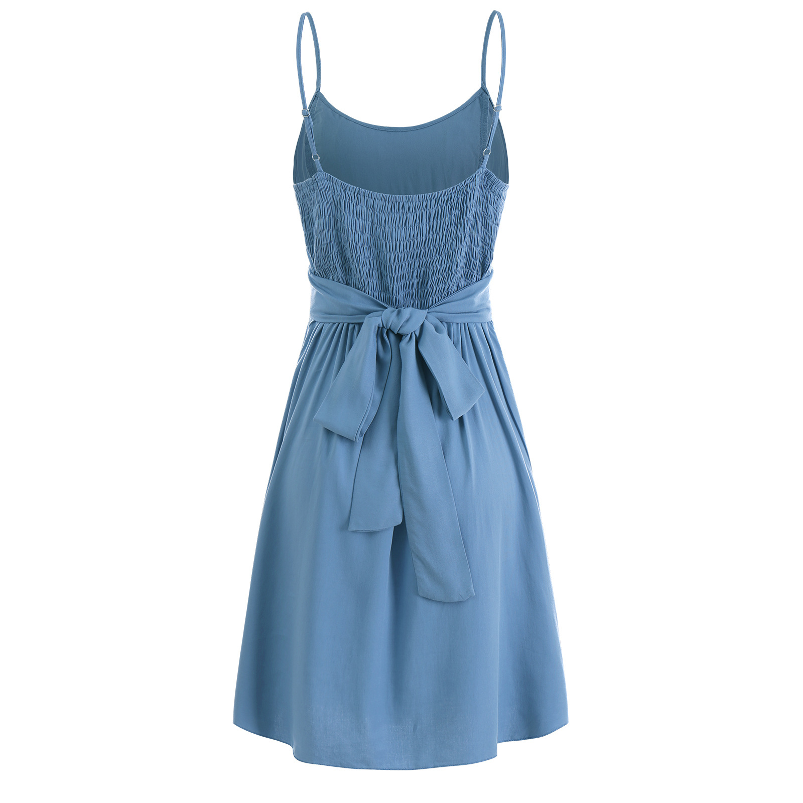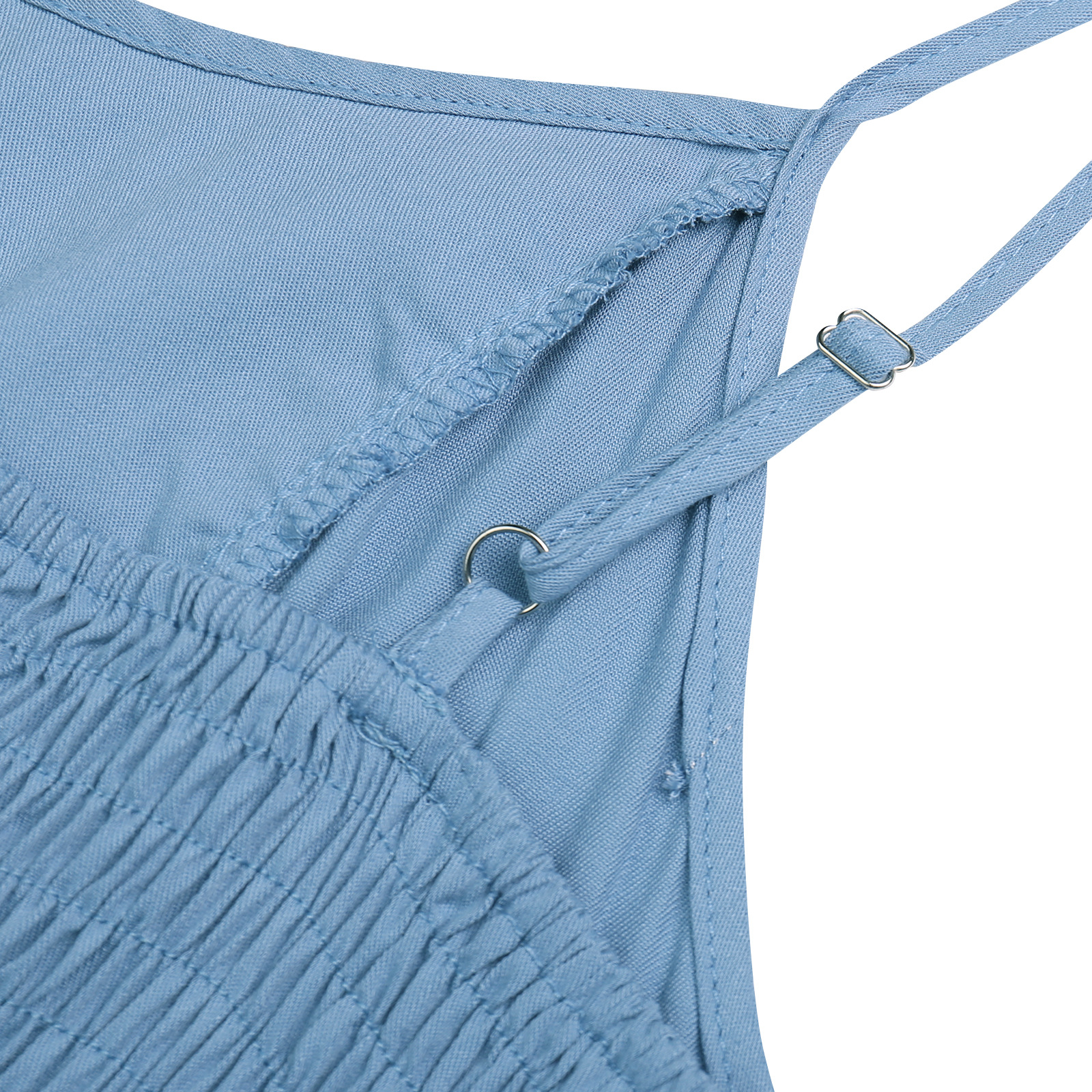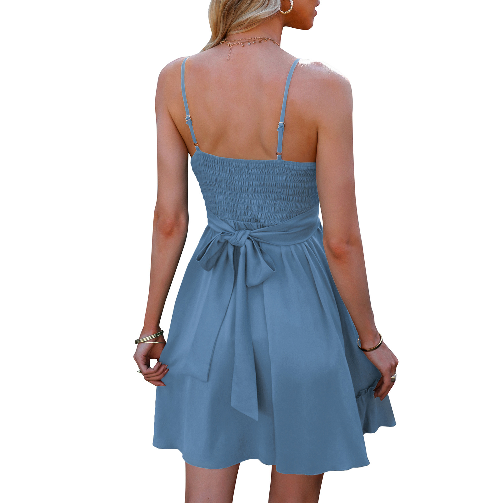 Summer new foreign trade ladies show thin wrap chest lotus leaf suspender dress blue M