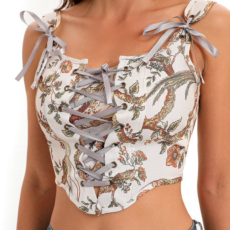 Palace style camisole womens outerwear womens 2022 spring and autumn new lace-up corset tops White S