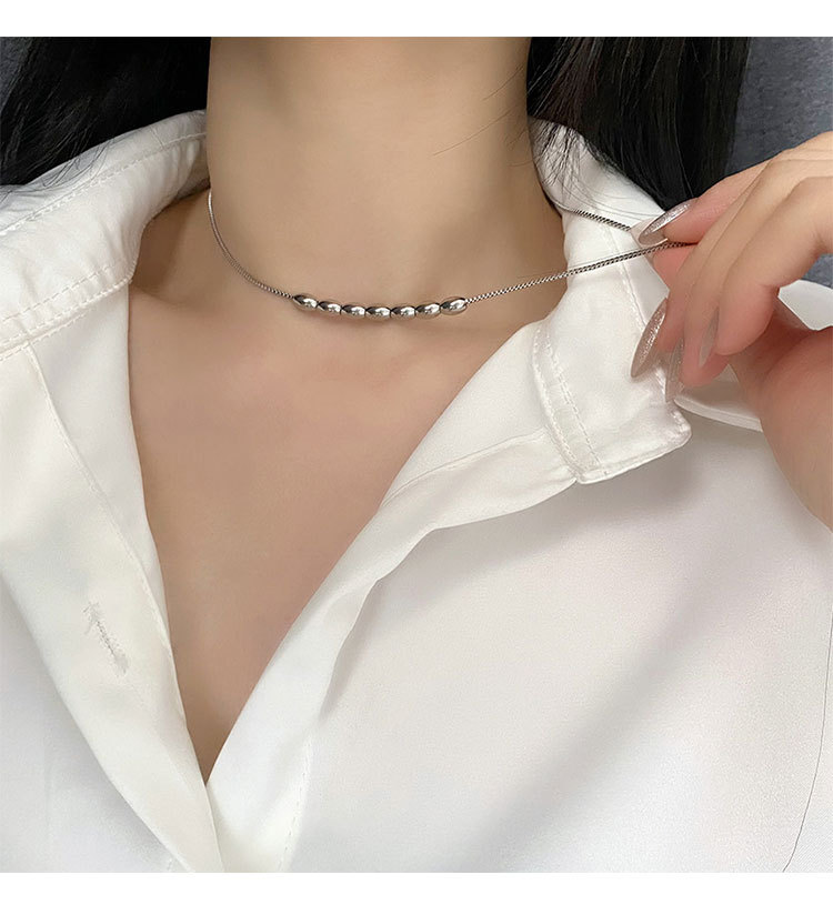 Small ball necklace niche design transfer collarbone chain 03-F3 Titanium Steel Transfer Bead Necklace Silver