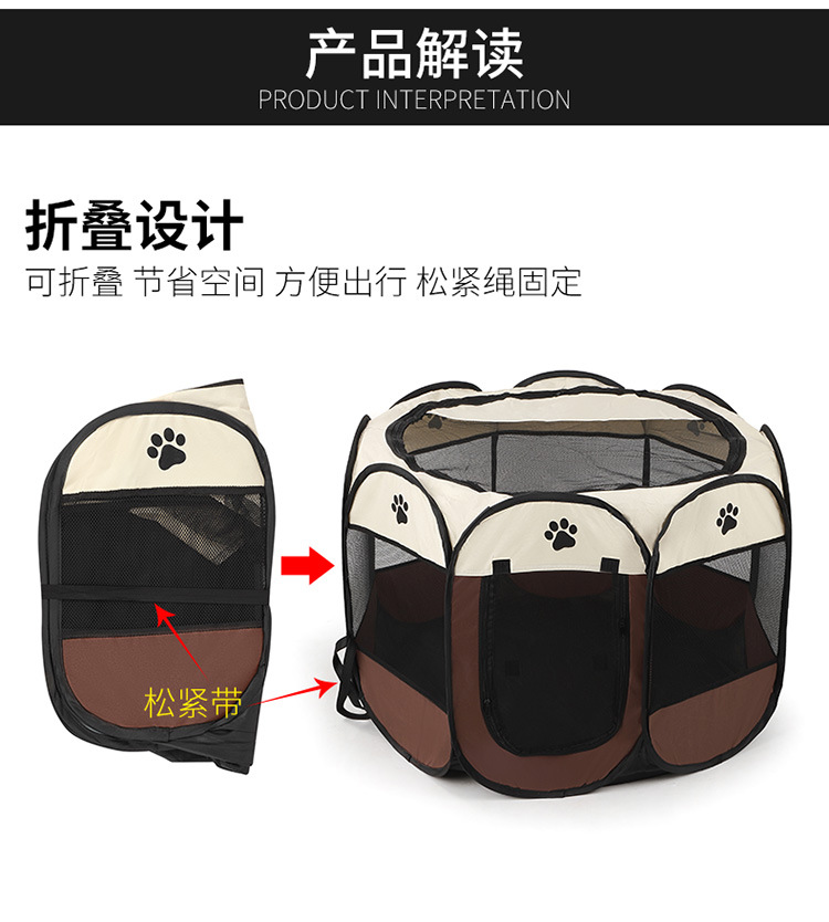 Pet Fence Foldable Kennel Cage Tent yellow+black 114*114*58CM