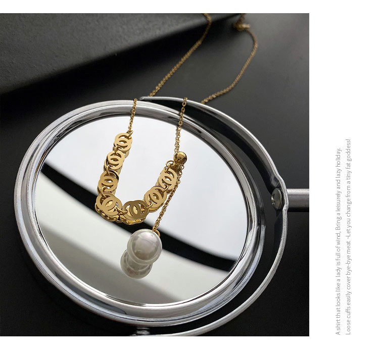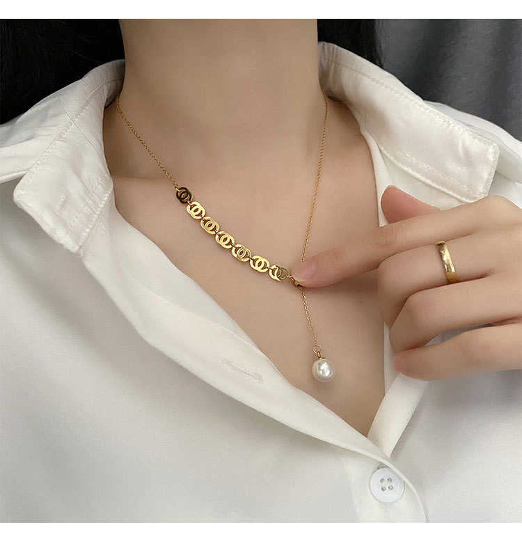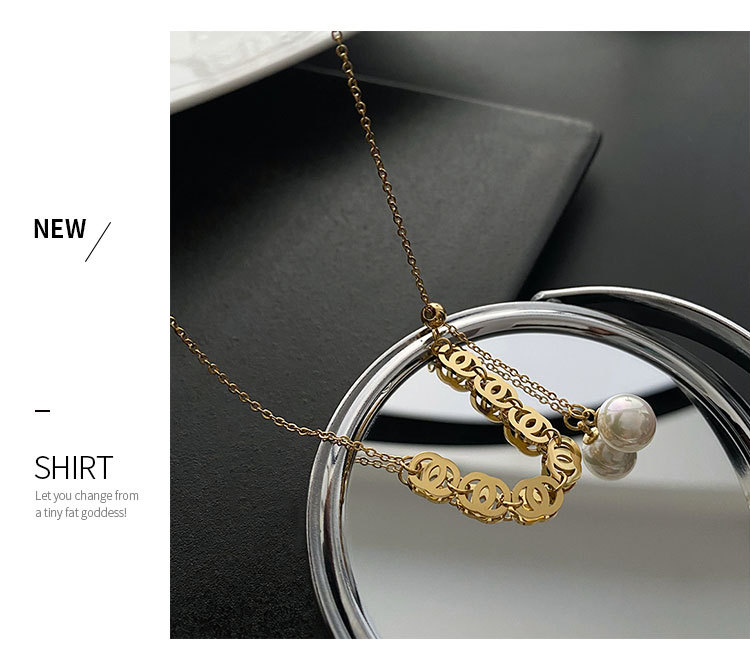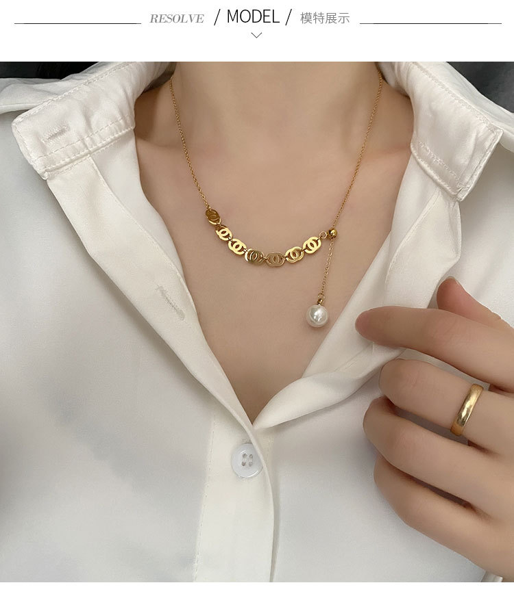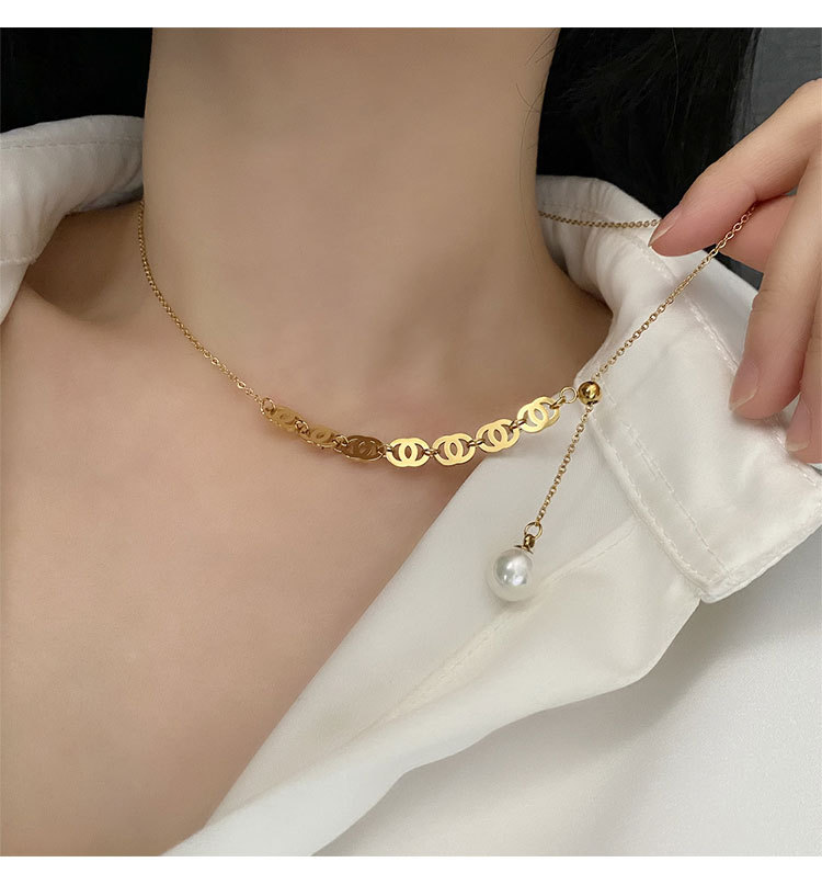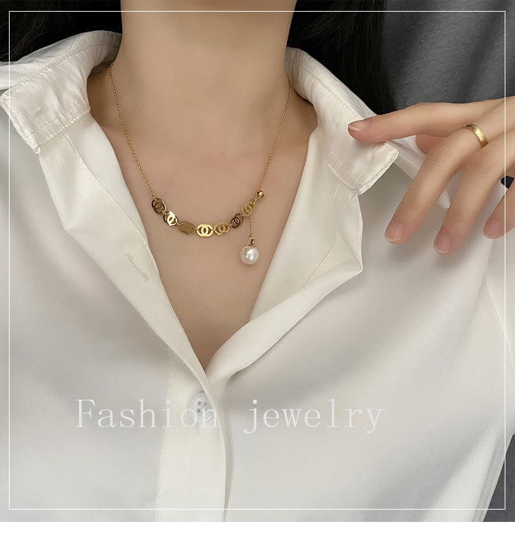 Interlocking titanium steel does not fade temperament collarbone chain 05-J24 Titanium Steel Coin Necklace