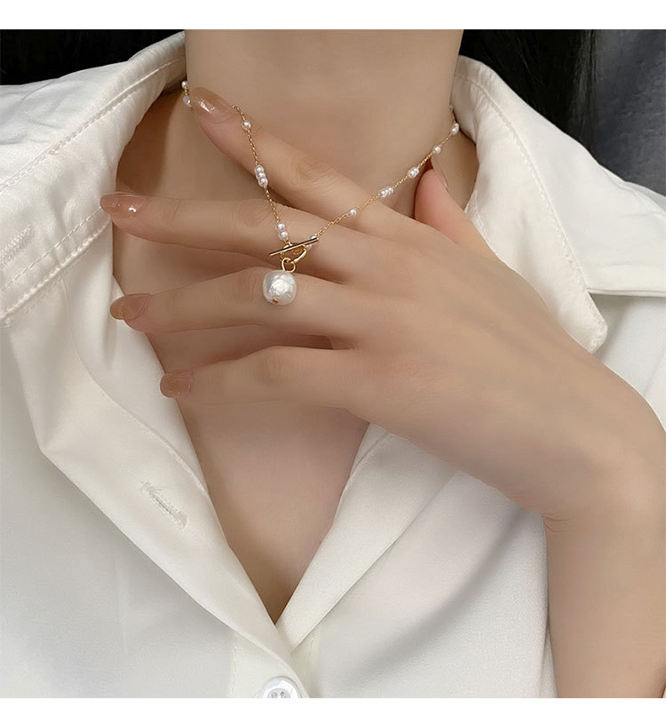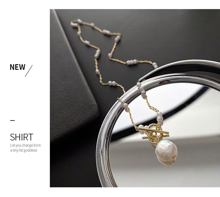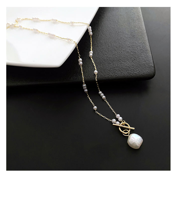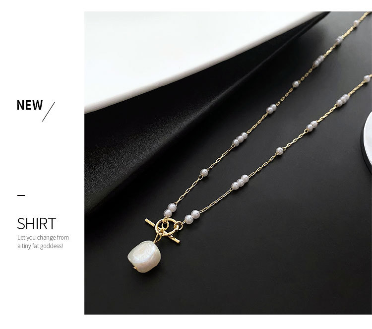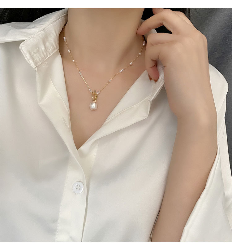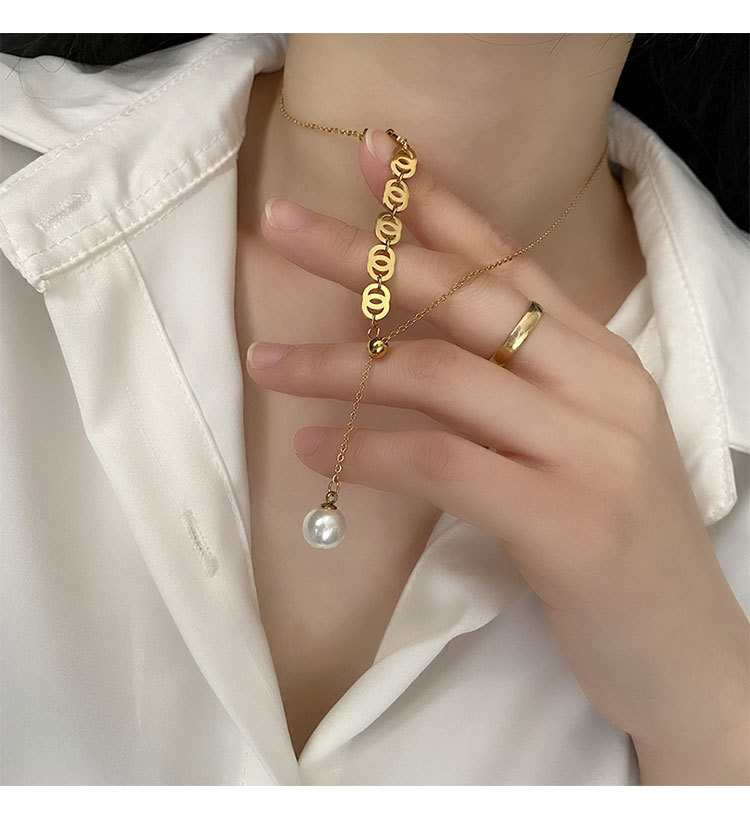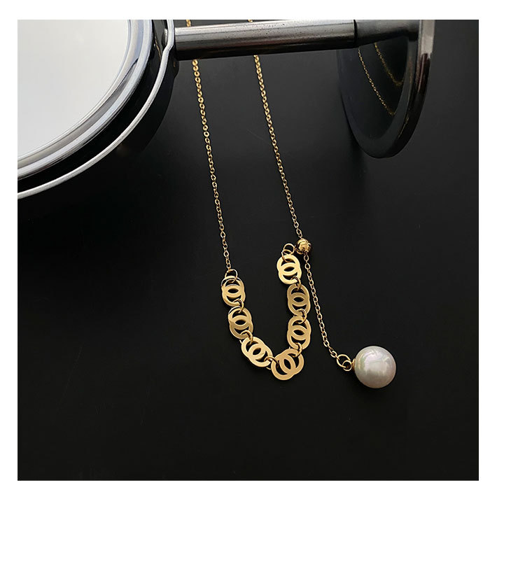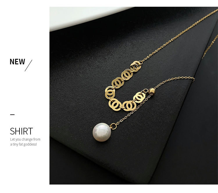 natural pearl necklace 01-K1 Titanium Steel Natural Pearl Square Necklace Gold