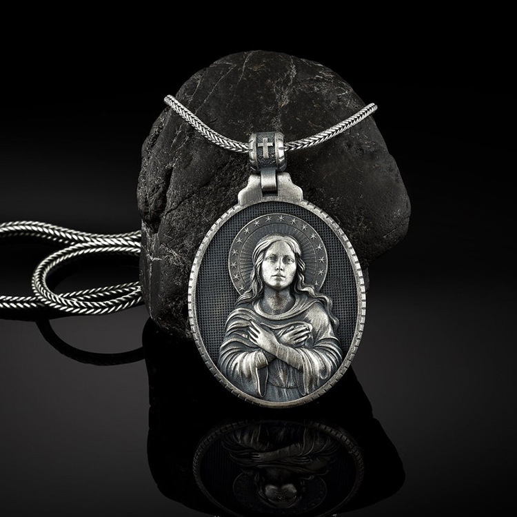 photo frame english square necklace 01-C3 Titanium Steel Photo Frame Necklace Silver