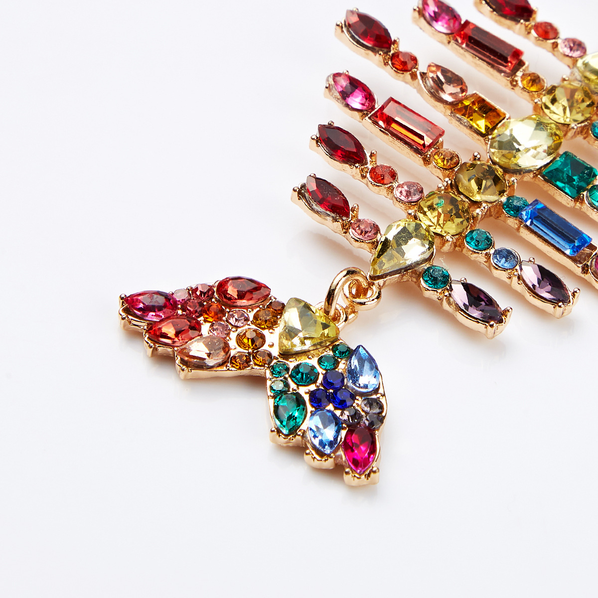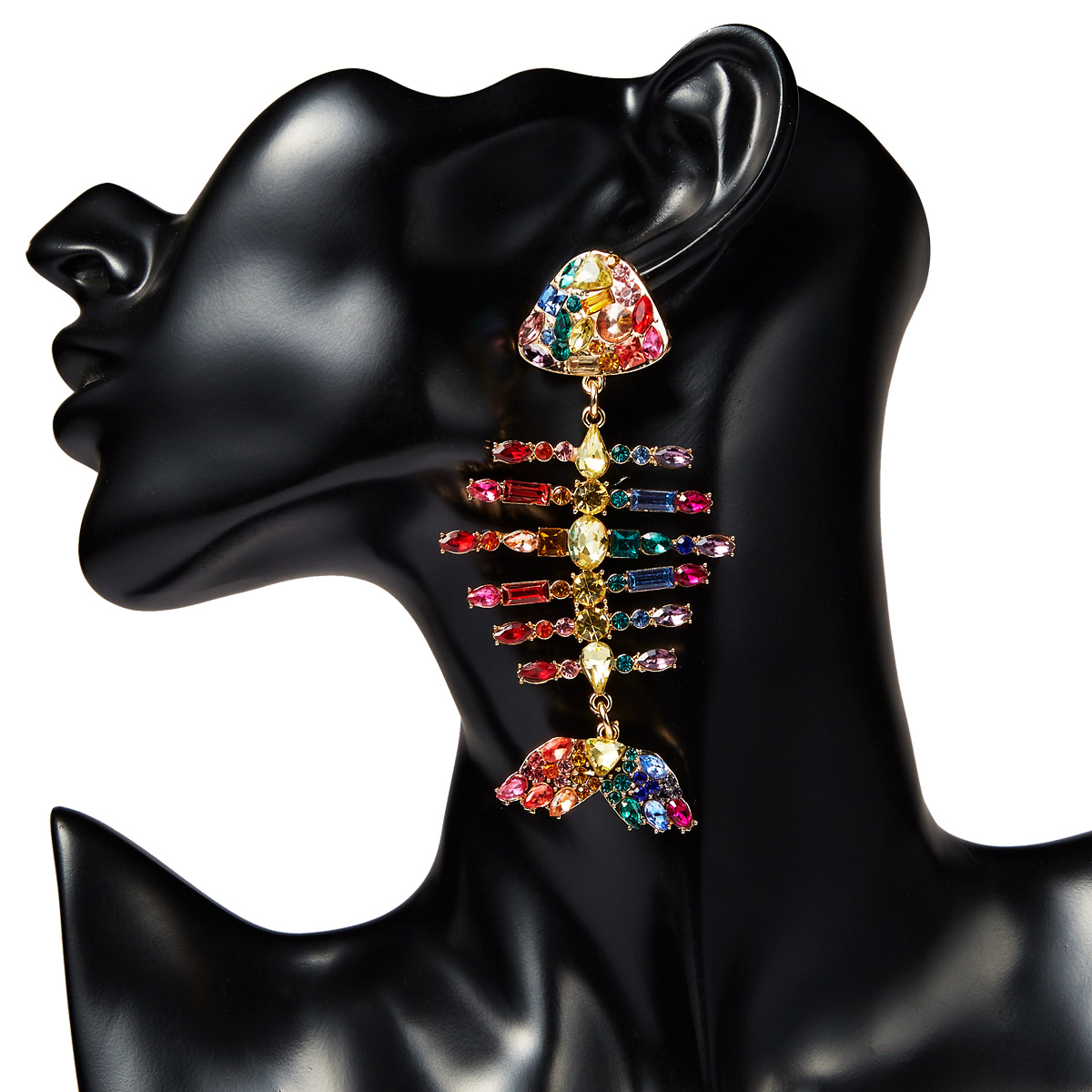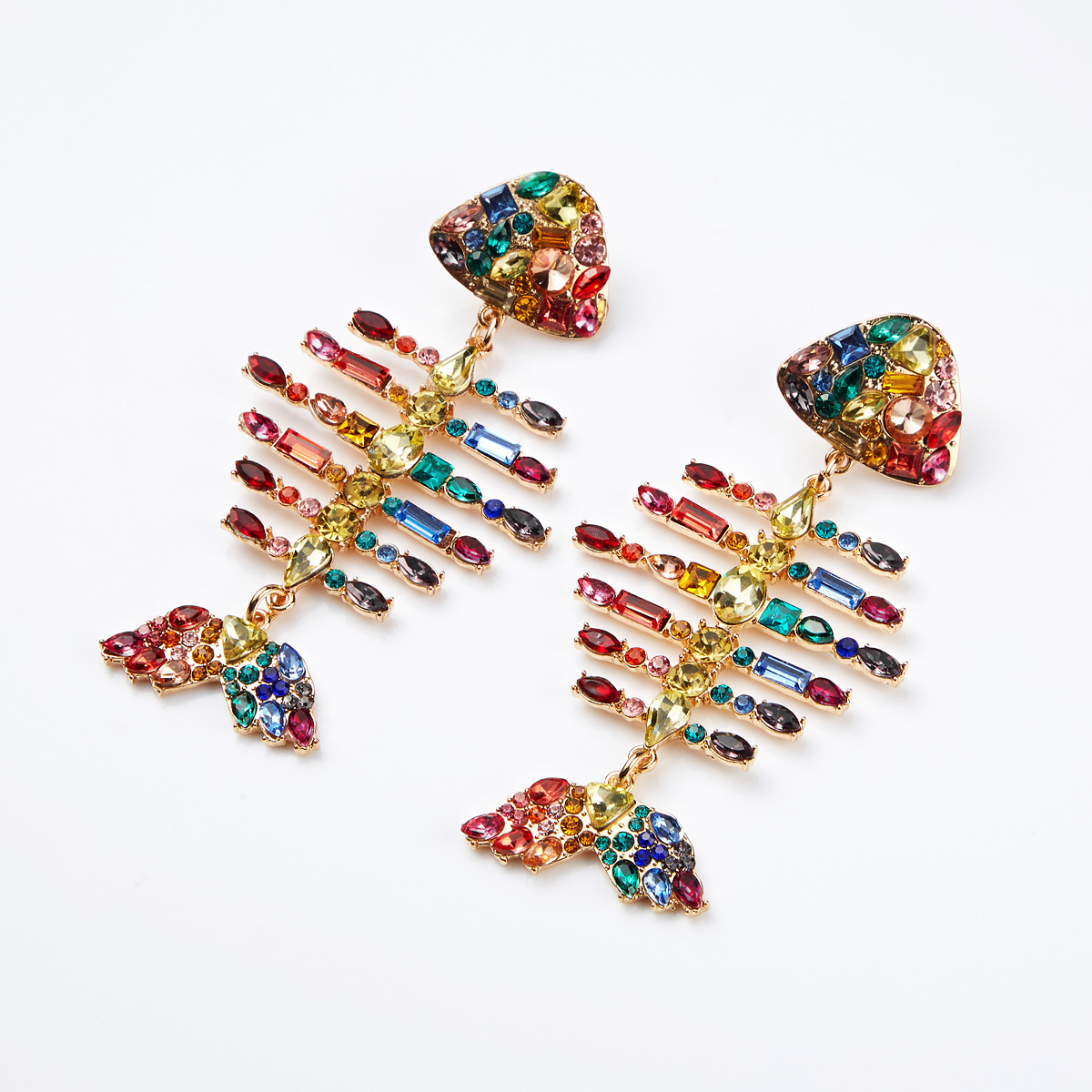 European and American exaggerated creative full diamond fishbone colored diamond earrings fashion super dazzling personality earrings color