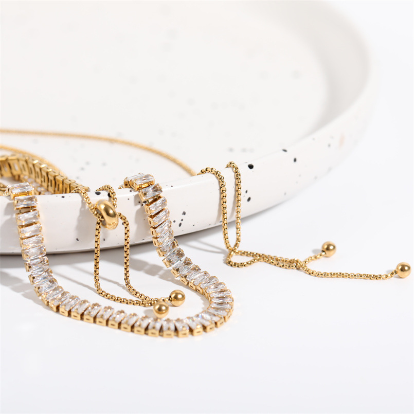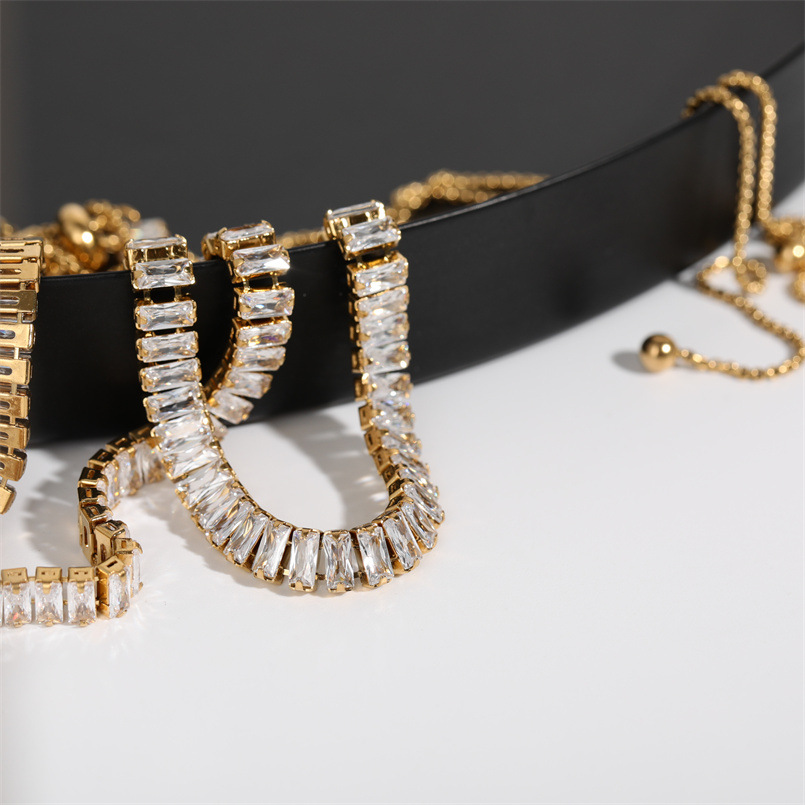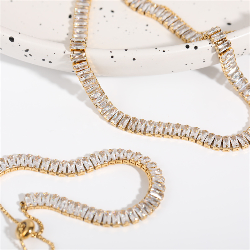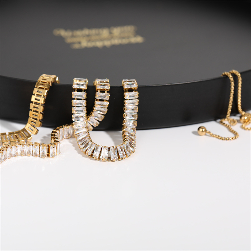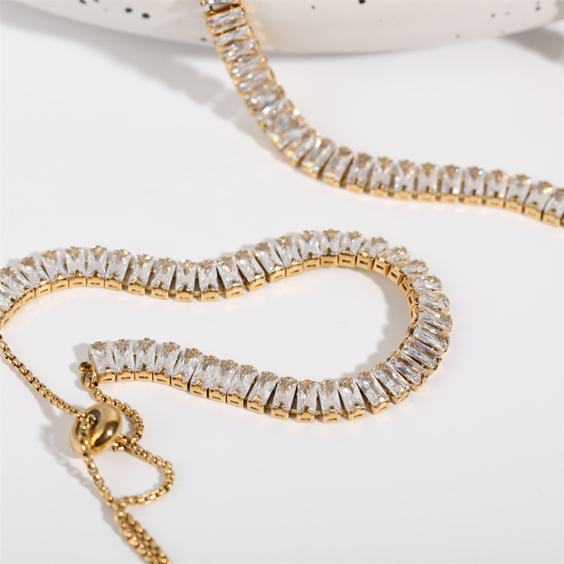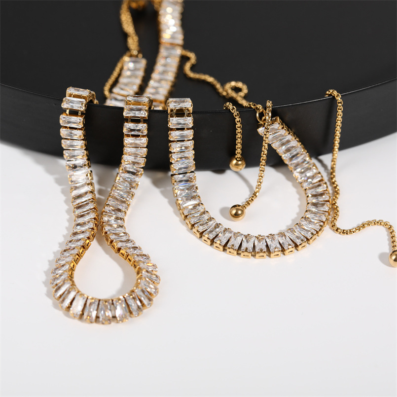 Full Diamond Zircon Drawstring Necklace Bracelet Set Bracelet