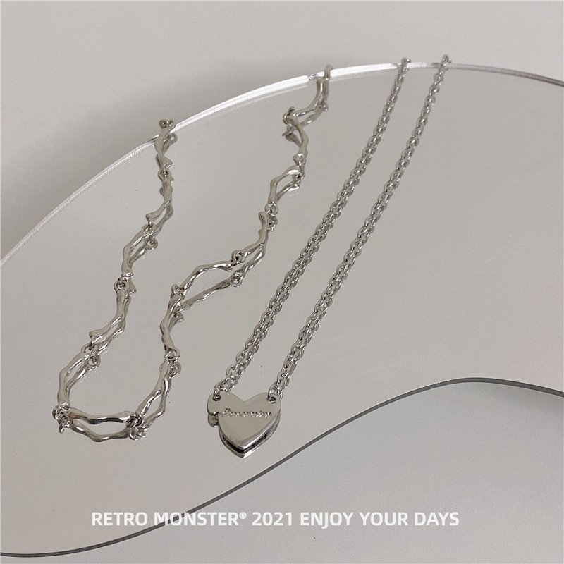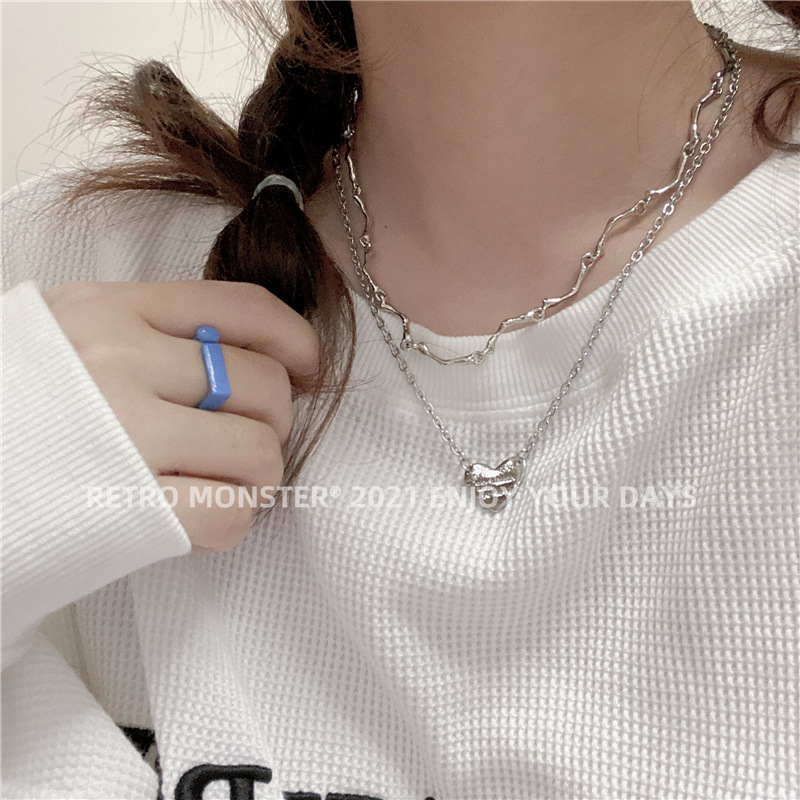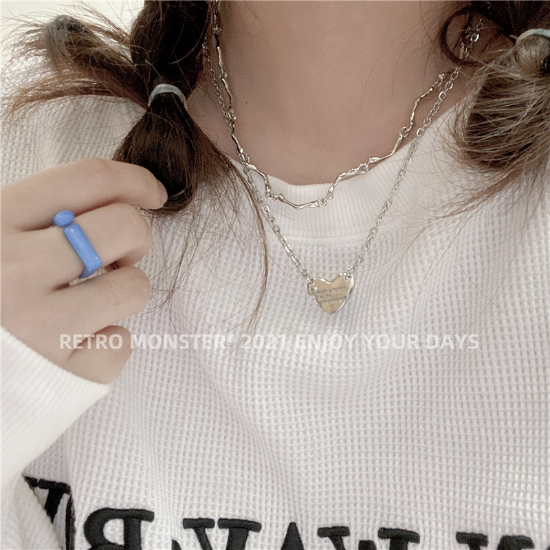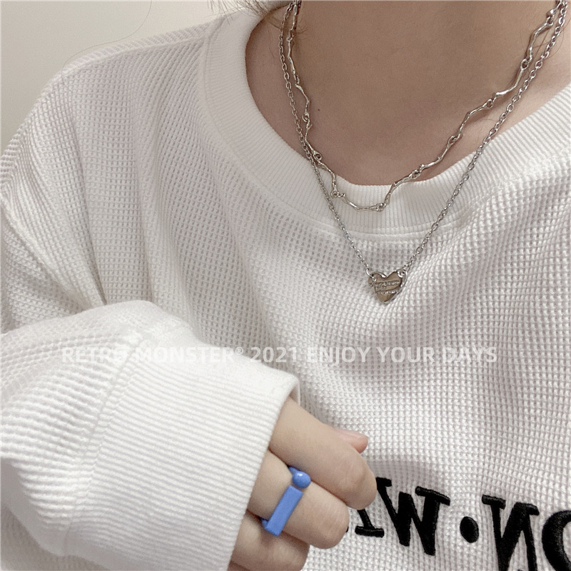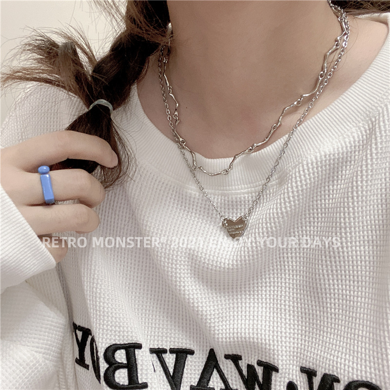 Double Layer Silver Heart Pendant Necklace Stacked Necklace ARTSY SHOP Silver Double Heart Titanium Necklace