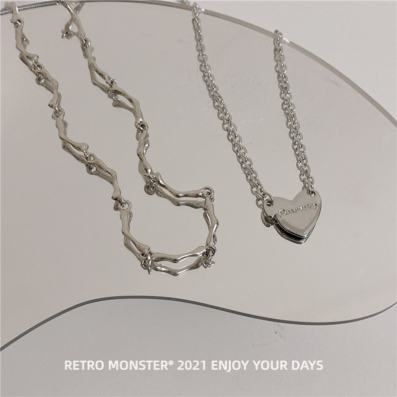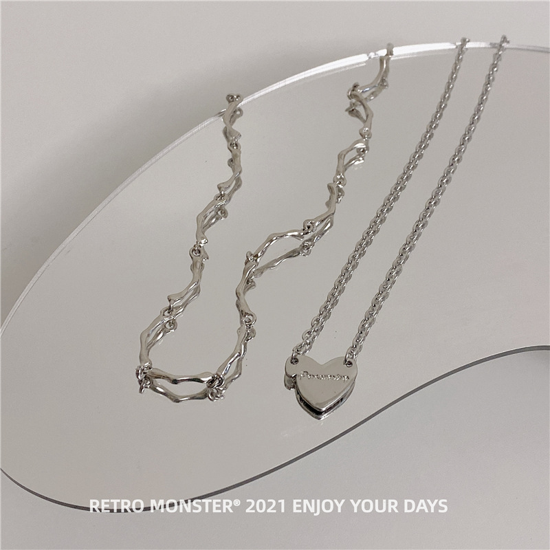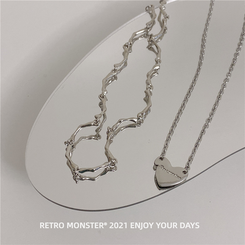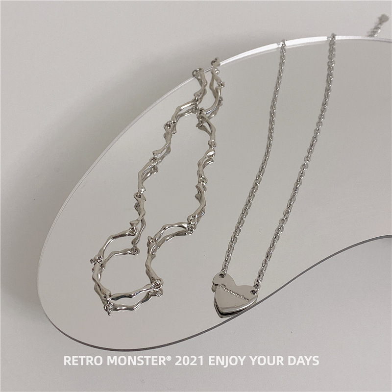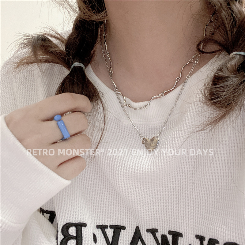 Double Layer Silver Heart Pendant Necklace Stacked Necklace ARTSY SHOP Silver Double Heart Titanium Necklace