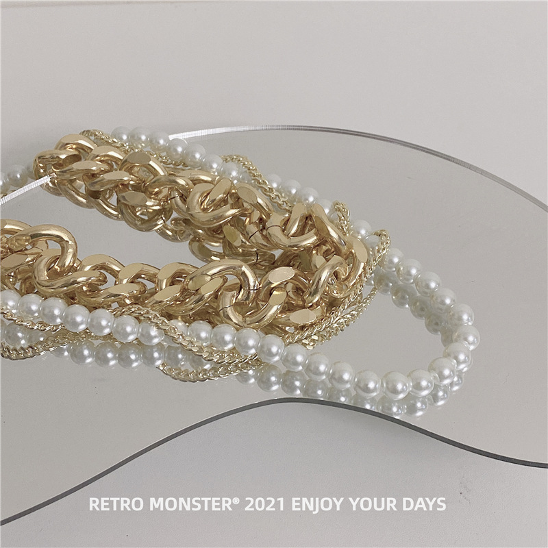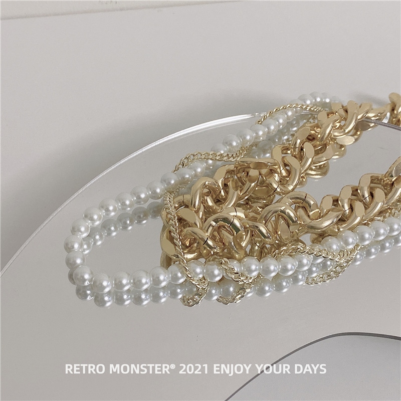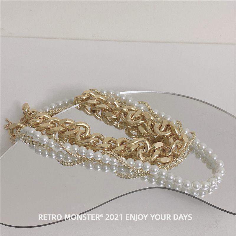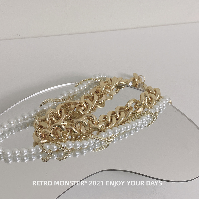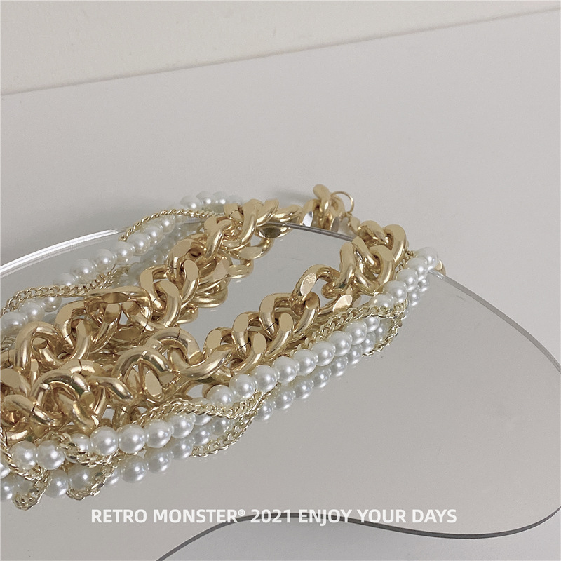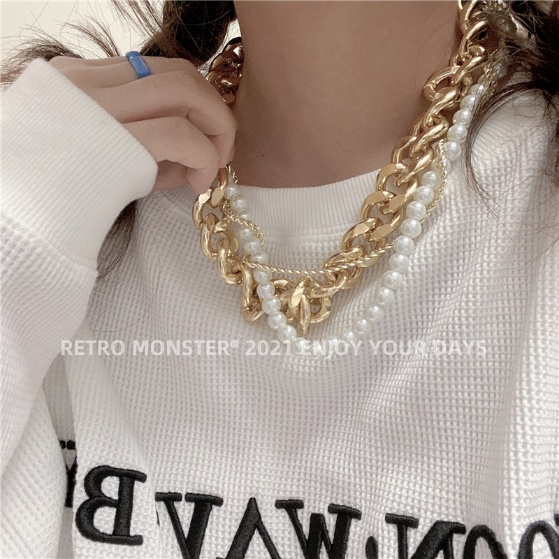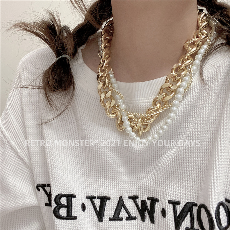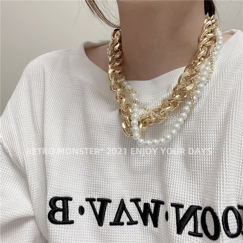 Gold Pearl Beaded Pendant Necklace Stacking Necklace ARTSY SHOP Gold Chain Pearl Necklace