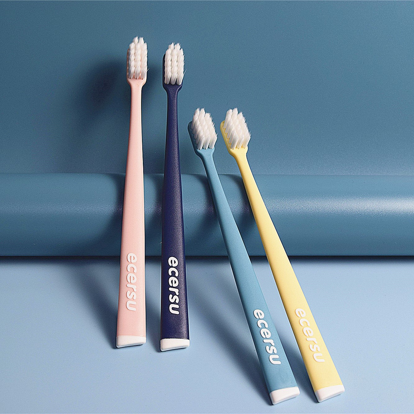 Silver ion antibacterial soft silk toothbrush 4 packs adult household silicone handle gum protection soft bristle toothbrush 4-pack of macarons