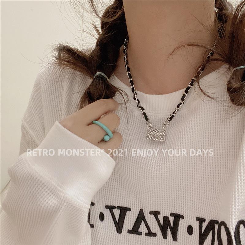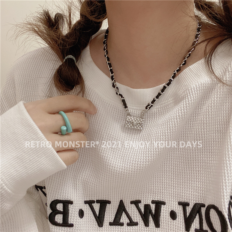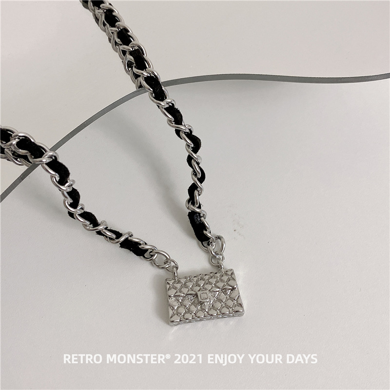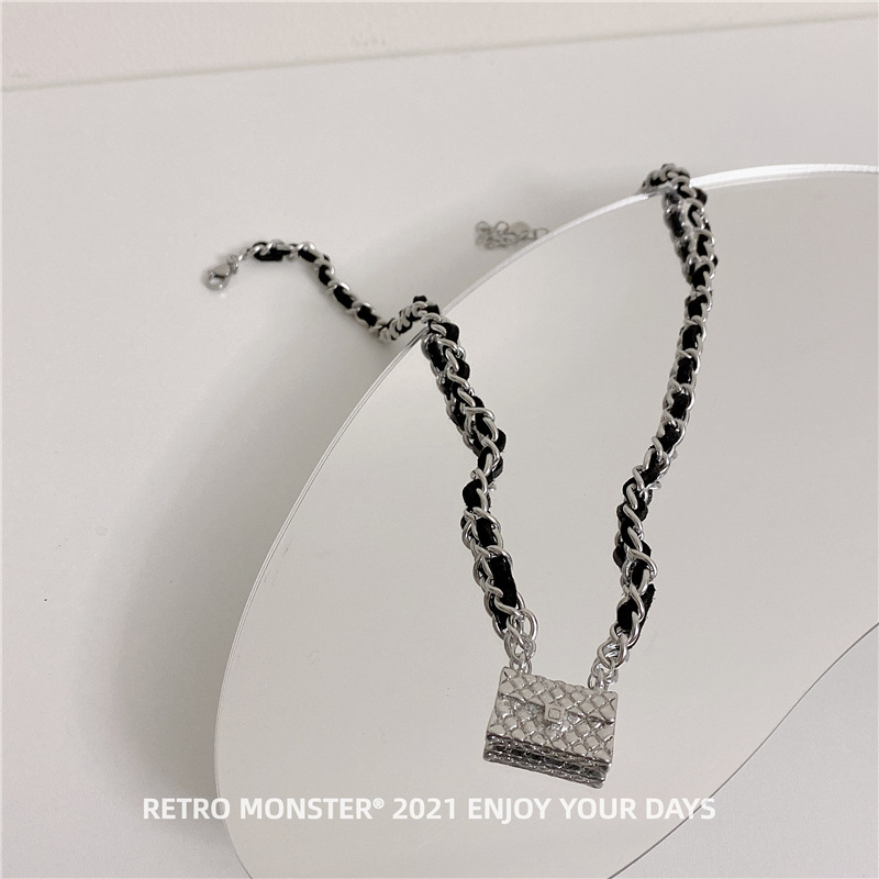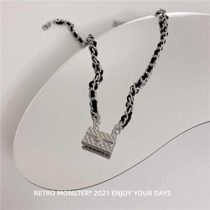 Hip Hop Silver Chain Bag Necklace Silver Bag Titanium Necklace
