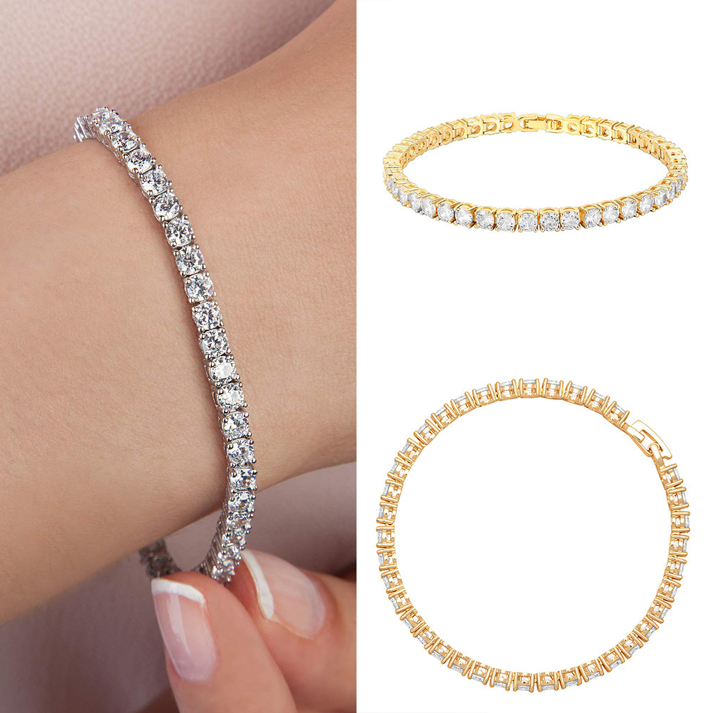 14K Gold Plated 3mm Cubic Zirconia Bracelet Gold 19cm